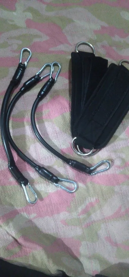 - Kit 5 pièces complet : 2 sangles de cheville + bandes de résistance